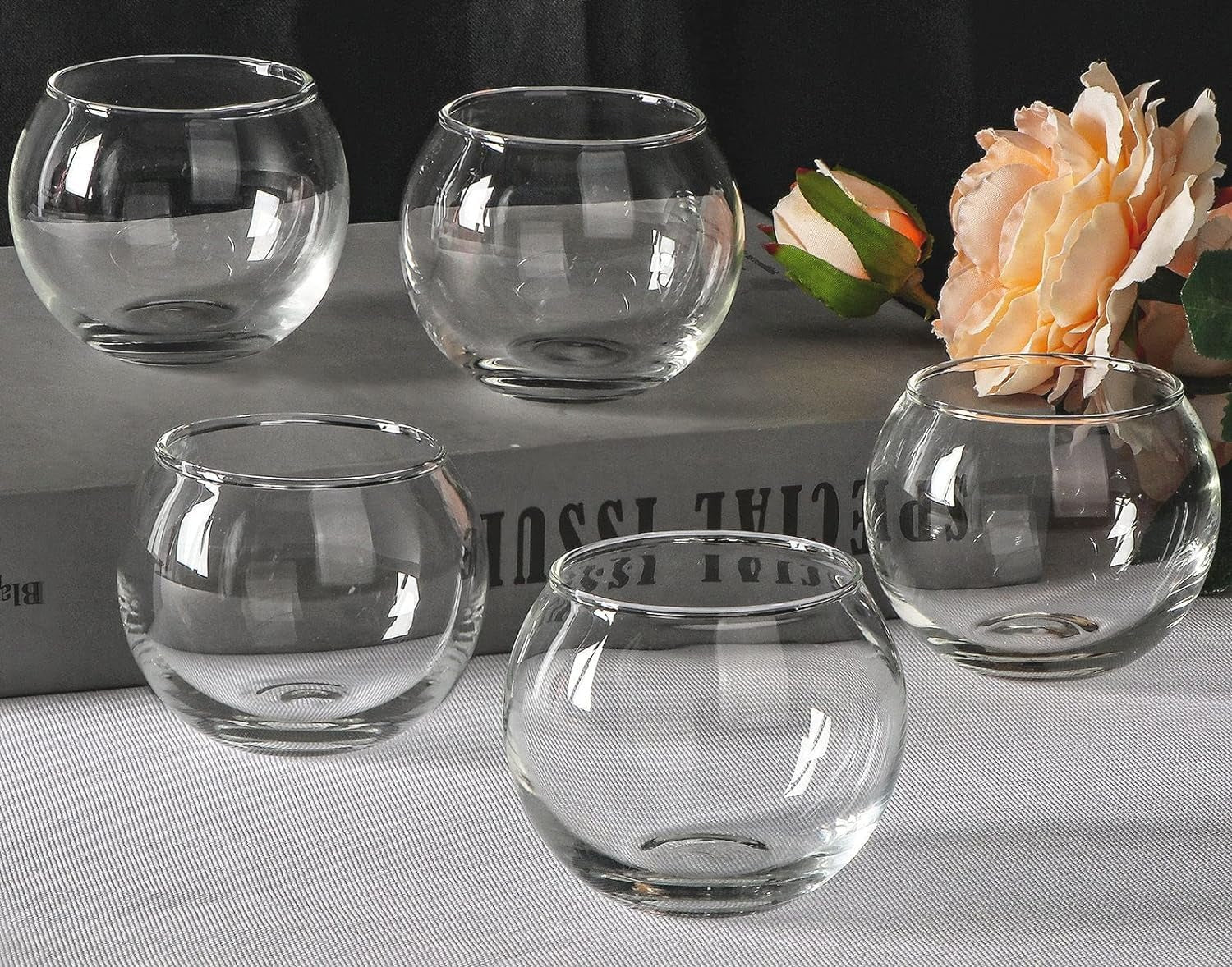 Glass Tealight Candle Holders Decorative Items for Home Christmas and Diwali (Clear)