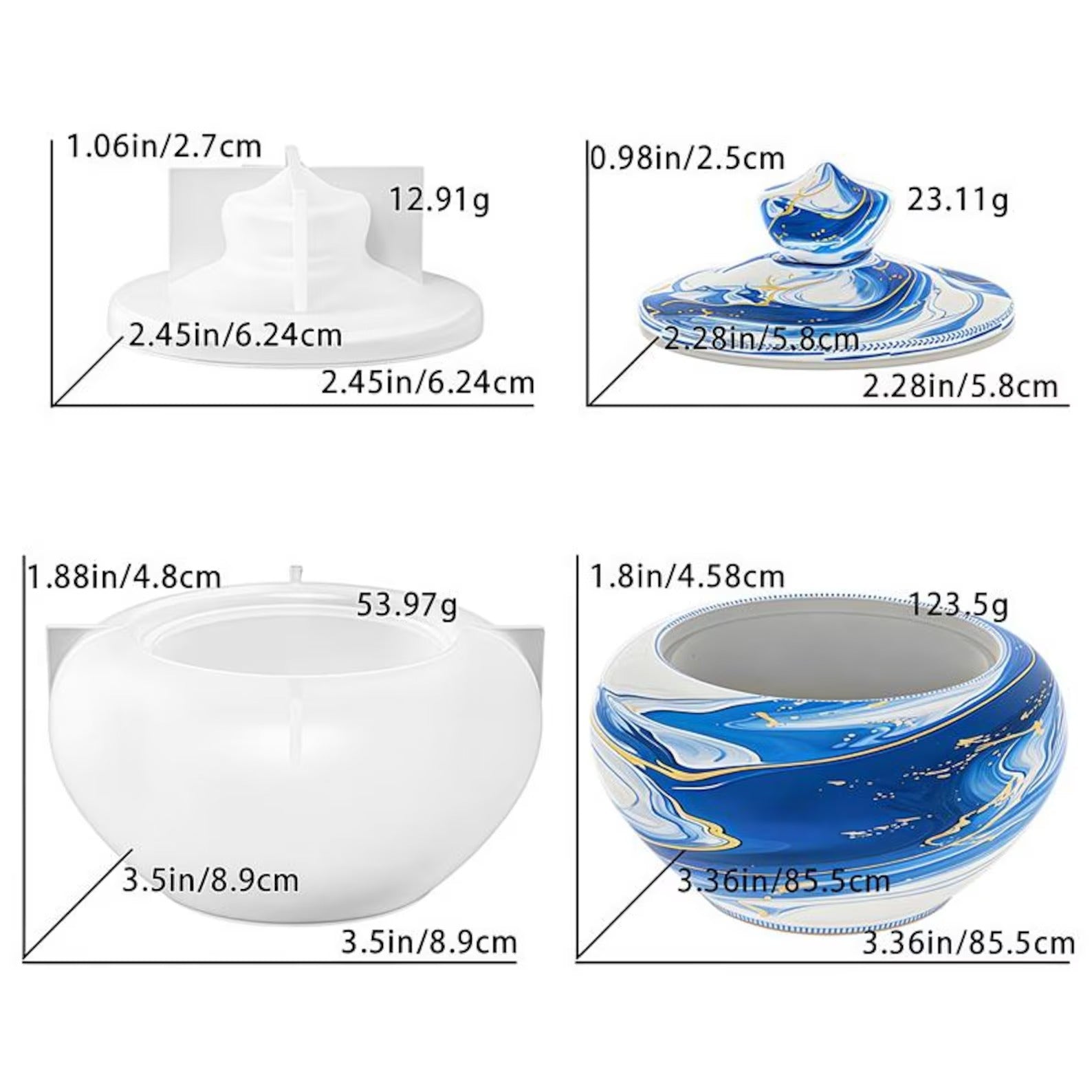 Craft stunning decorative pieces with this versatile Nordic-inspired silicone mold. Perfect for resin casting, concrete pouring, jesmonite, or plaster work, this mold produces elegant round vessels ideal for teapots, trinket boxes, storage containers, and candle holders. The durable silicone construction ensures easy demolding and exceptional detail reproduction, making it essential for artisans and DIY creators. Create professional-quality home décor items with consistent results every time. Compatible with various casting materials for endless creative possibilities.